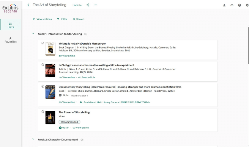 - Leganto streamlines the creation and management of course materials.