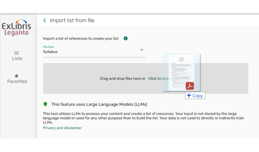 - Effortlessly upload of reading lists – Instructors and library staff can effortlessly upload a syllabus or any file that contains course materials and create a reading list with a couple of clicks.