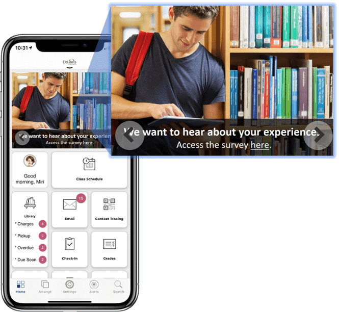 Like a dedicated tile, the banner slide can link directly to the student survey – once a student’s interest is piqued, it’s easy for them to access and complete the survey from within the app.