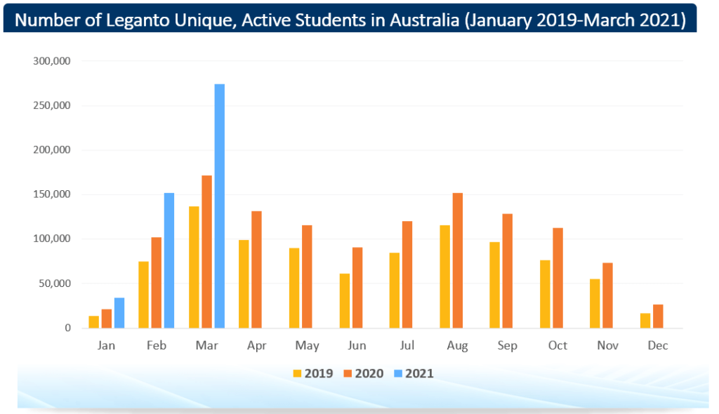 Here is another amazing detail: In March 2020, there were 172,668 active students; in March 2021, that number was 274,078! In other words, the number of active students showed a 59% increase from March 2020 to March of this year.